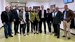 CSU-Kreistagsfraktion besucht Oskar-Sembach-Realschule Lauf. Bildmitte: CSU-Kreistagsfraktion-Vorsitzende Cornelia Trinkl sowie Realschuldirektor Günter Heid und stellvertretende Schulleiterin Ursula Appl (rechts und links daneben), Kreisrat Bernd Müller im Bild ganz links.