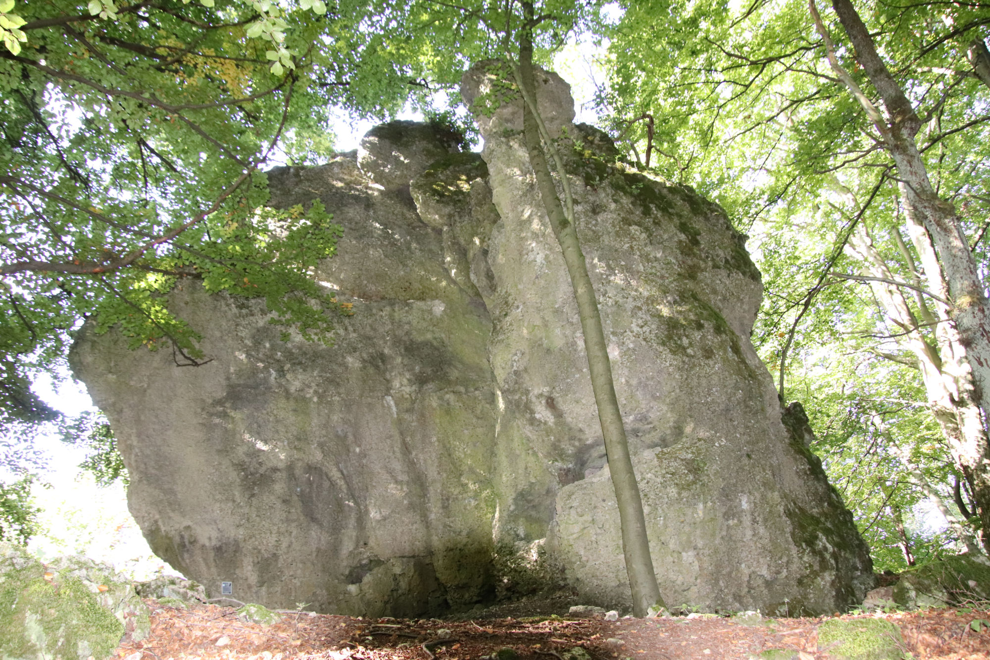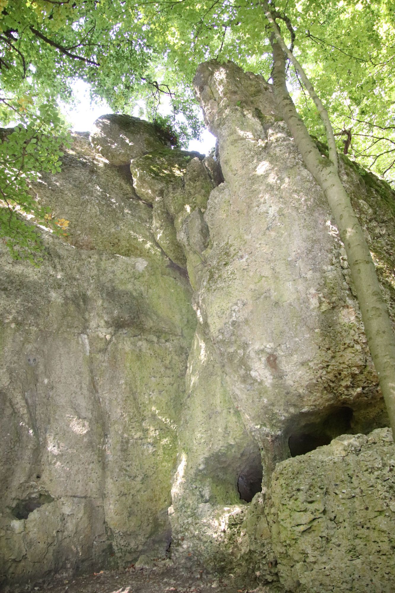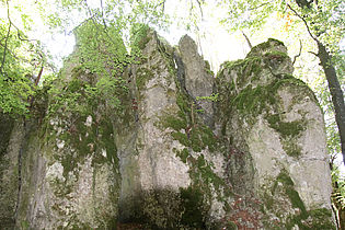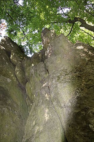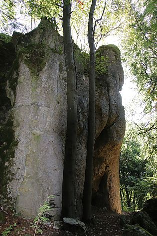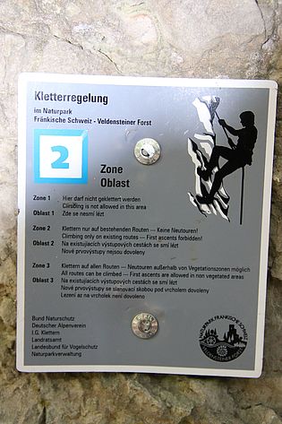 Kalkstein-Kletterfels mit Neutourenverbot, Felshöhe ca. 12m Ausweisung 25.03.1948Position: 49° 24′ 48.2″ N 11° 33′ 2.56″ E